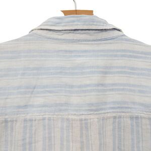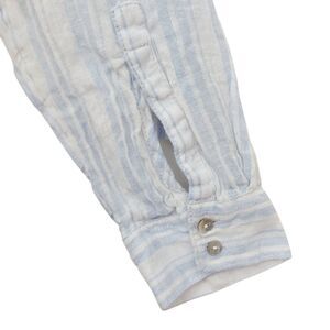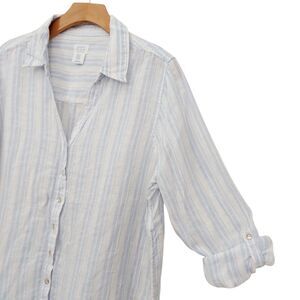 Sigrid Olsen Shirt Womens 1X Blue Stripes 100% Linen Roll Tab Sleeve Nautical