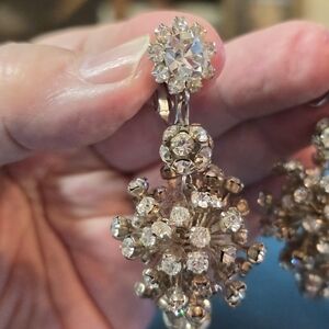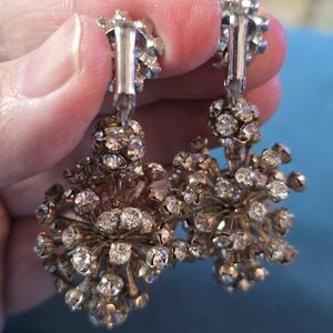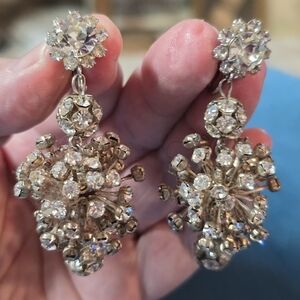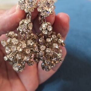 Elegant Crystal Drop Earrings Clip Ons 2.5"