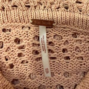Free People Pink Crochet Knit Top w/ Ribbon Tie Sleeves – XS