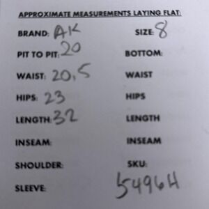 Note: Measurement card lists size 8; please refer to measurements for best fit.