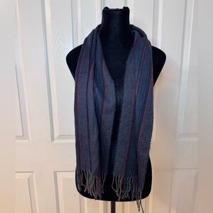 Vintage Preppy Scarf Navy Blue Stripes Men Women Cashmaire Acrylic Made In Japan