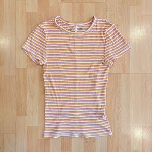 Urban Outfitters | Orange & purple striped slim fit short sleeve top