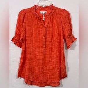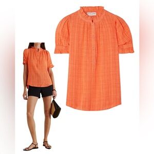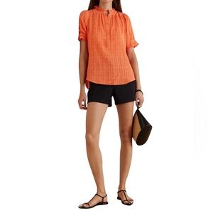 APIECE APART Los Altos Ruffled Cotton Voile Blouse Orange Small Cottage Core