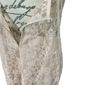 Victoria’s Secret Floral Lace and Rings Slip Dress from the Dream Angels Line in a soft peach can be worn as a dress since the bodice and skirt are lined.