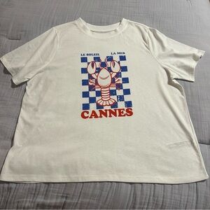 New without tags!!! Comfortable white t-shirt with relaxed fit. Features blue checkered background with red lobster. Tee says Le Soleil and La Mer Cannes. Made in Bangladesh. SO CUTE!!!!