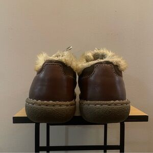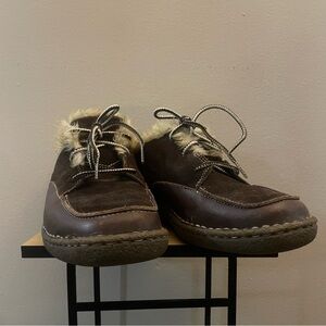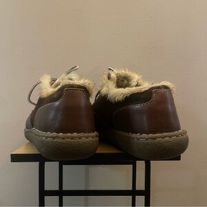WindRiver Brown Leather & Suede Faux-Fur Lined Lace-Up Loafers – Size 9 GUC