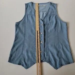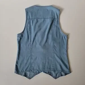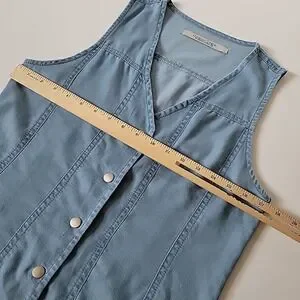 London Crew Chambray Vest Top Snap Button V Neck Coastal Cowgirl Preppy Western