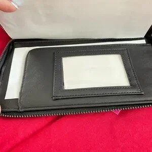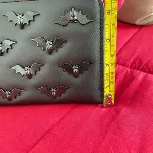Stylish Betsey Johnson large accessory wallet. Features bold black colors with gunmetal bat embellishments. One bat is embellished upside down as pictured above. ⬆️