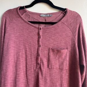 Prana Hensley Henley Cotton Tencel Blouse Long Sleeve Top on Brandy size M