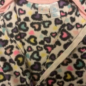 Kidgets Hearts Sleeper. Size 18 Month. Full zip from inside ankle to neck. Neck has snap cover for top of zipper. Super soft fleece. Long sleeve and grip bottoms on feet. Practically brand new. Great condition. 🩷Pet/Smoke Free🩷