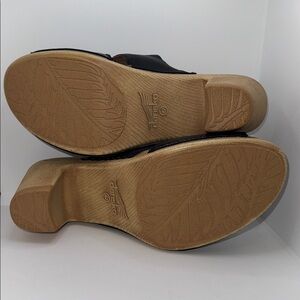 Dansko Tandi Block Heel Sandals Peep Toe Black Leather Women’s EU 42 US 11.5-12. Slip on, genuine leather upper, peep toe, mule/clog style sandals, chunky block heel, good tread. Great condition!