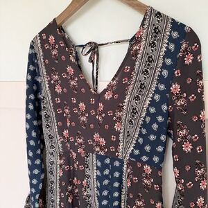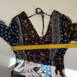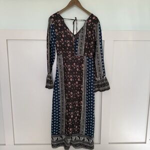 Loveriche Patchwork Maxi Dress MED Handkerchief Bell Sleeve Slit Boho Hippie