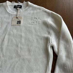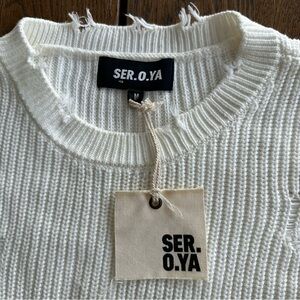 NWT SER.O.YA Women's Distressed Sweater in White with Blue Stripes | Size Medium