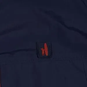 Color: Navy blue exterior with bright red contrast zippers and red logo details.