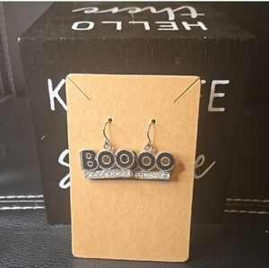Add a playful touch to your outfit with these silver and black 'BOO' earrings. Perfect for any occasion.