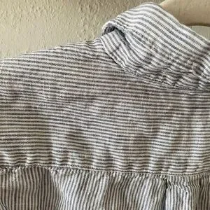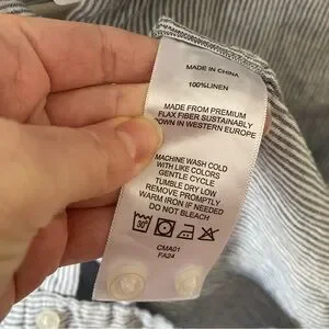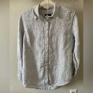 Quince Blue Pinstripe 100% European Linen Buttoned Top Classic Business Spring M