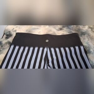 Dynamic LULULEMON striped leggings for active lifestyles. Perfect for workouts or casual wear. Sleek and stylish design.😍🖤💜