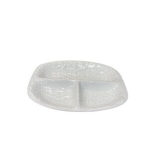 Loucarte Portugal Crafted for durability and elegance, this textured white ceramic plate features a functional divided design, ideal for serving multiple dishes with style. In very good condition with no defects noted. I ship fast. SKU 9764