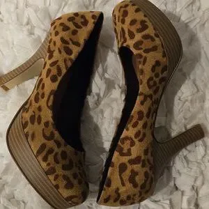 Elevate your look with these stylish leopard print heels. Perfect for a bold statement.