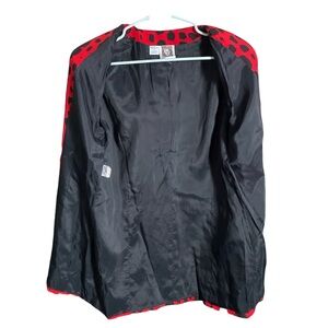 Vintage Anne Klein Silk Red & Black Leopard Print Single Button V-Neck Blazer 8