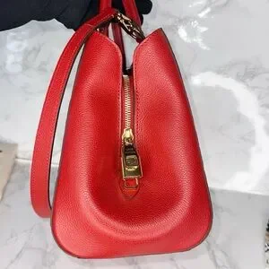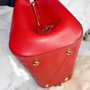Chic red satchel with matching wallet. Features signature embossed monogram design. Bag is in excellent pristine condition. Worn only a few times, no rubbing, no scratches, no stains, no tarnishing on hardware and still very shiny. Matching wallet is clean and no stains or rubbing as well, also in excellent conditions. Bundle Includes stylish Monogram Confidential Bandeau scarf.