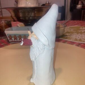 Charming white ceramic gnome figurine. Perfect for home decor or gifting.