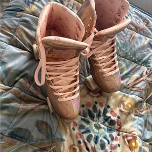 Shine bright with these iridescent roller skates, perfect for making a bold statement. The unique finish adds a touch of glamour to your skating experience.