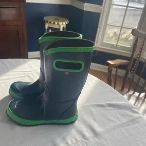 BOGS Kids navy with Green Trim Rain Boots Eeuc! Unisex big kids 3 waterproof