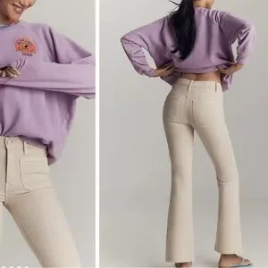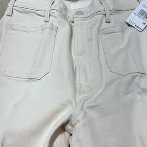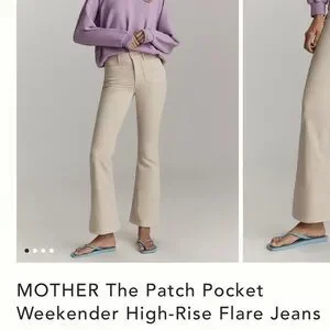 MOTHER The Patch Pocket High-Rise Flare Jeans in Cream