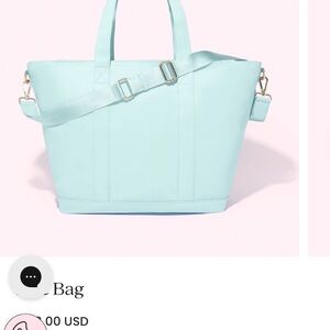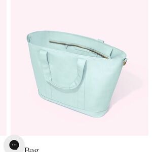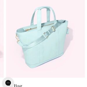 Elegant sky blue tote with sturdy handles. Includes detachable strap for versatility.