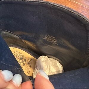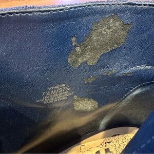 Excellent pre-owned condition! The suede is vibrant and well-maintained. Light, normal wear on the outsoles. Please note there is visible peeling/scuffing on the man-made lining inside the shaft (see photos). This is purely cosmetic and does not affect the exterior leather or the wearability of the boots. The leather uppers remain in great shape!