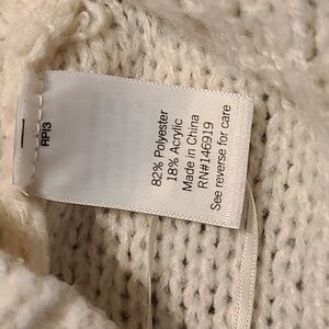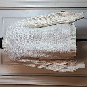 Long Baloon Sleeves, Crew Neck, Loose Fit Body, Cable Knit, Ribbed Sleeve Cuffs and Hemline, White Color, No Spots or Stains at All, Size Small.