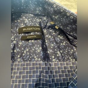 Bugatchi Button Down Shaped Fit Cotton Shirt Size Small Navy Print 100% cotton