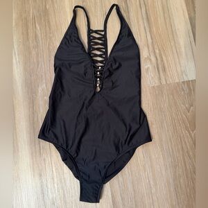 Elegant black one-piece swimsuit Ideal for beach outings.
