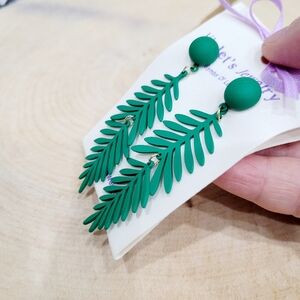 Brand New Green Leaf Dangle Earrings