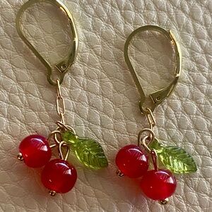 🍒Red Cherry Dangle Earrings with Gold Hooks