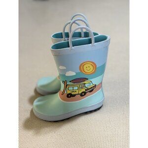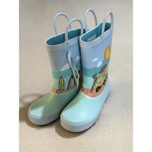 New Cat & Jack Rain Boots Size 9 Youth Girls Blue Fun Beach Graphics