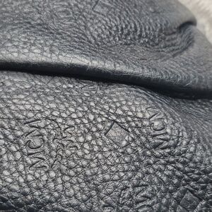 EUC Elegant MCM handbag in classic black leather, featuring luxurious gold accents. Crossbody strap. Unbranded bag charm included. Perfect for any occasion. May have some tarnishing on the hardware.