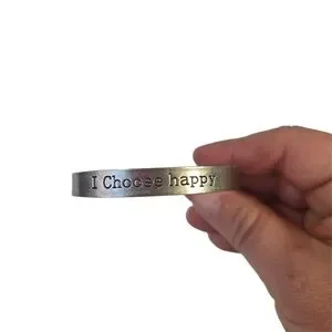 Silver bracelet with 'I Choose happy' engraving. Simple and stylish.