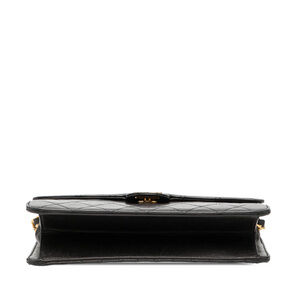 This crossbody bag features a quilted lambskin leather body, a leather woven chain strap, a front flap with snap button closure, and an interior zip pocket. It carries a B+ condition rating.