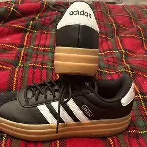 Stylish Adidas sneakers in black and white. Features a distinctive gum sole. Ideal for casual outings.