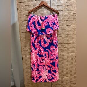 Lilly Pulitzer NWT $178 MERIDIAN MIDI DRESS Octopus Strapless Resort-wear Size L