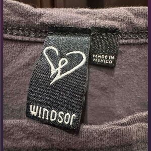 Edgy gray crop top with bold graphic. Features cut-out design. Perfect for casual wear.