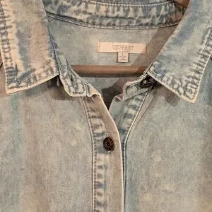 VeveRet light wash denim shirt with button-up front. Features a classic collar and stylish faded design.