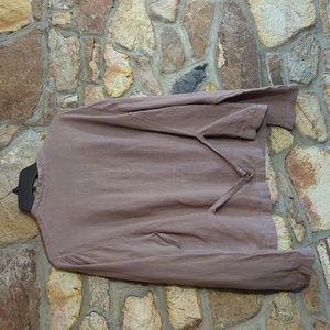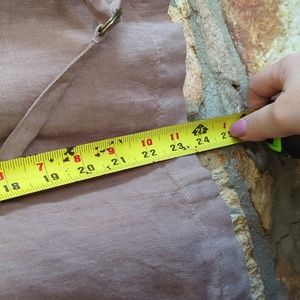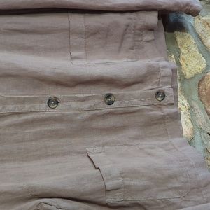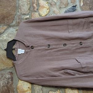excellent pre-owned condition, 100% linen button down top from Sigrid Olson. size XL. light brown color with brown buttons, two front pockets, long sleeve. see photos for more details and approximate measurements.