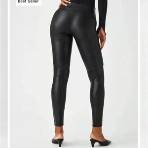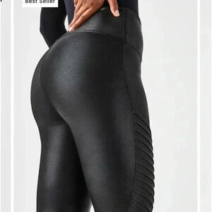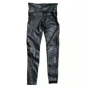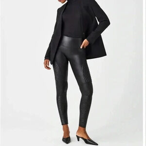 Spanx Women Faux Leather Moto Leggings Black Skinny Legs Pull On Size L