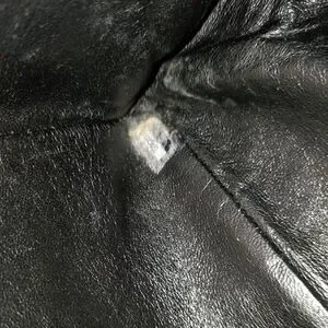 Chanel sticker is visible but worn