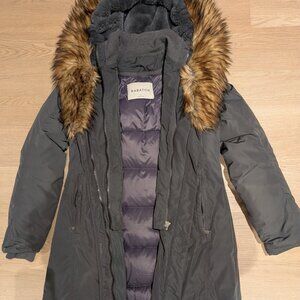 Two-way zip gives you options to semi-close or fully-close the jacket! Fur-trimmed hood that's lined on the interior, very soft.