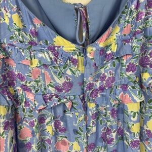 For Love & Lemons Charlene Puff Sleeve Mini Dress Blue Floral - Size S