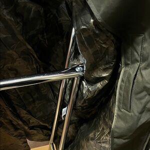 Sophisticated dark green raincoat with a hood. Ideal for rainy days.